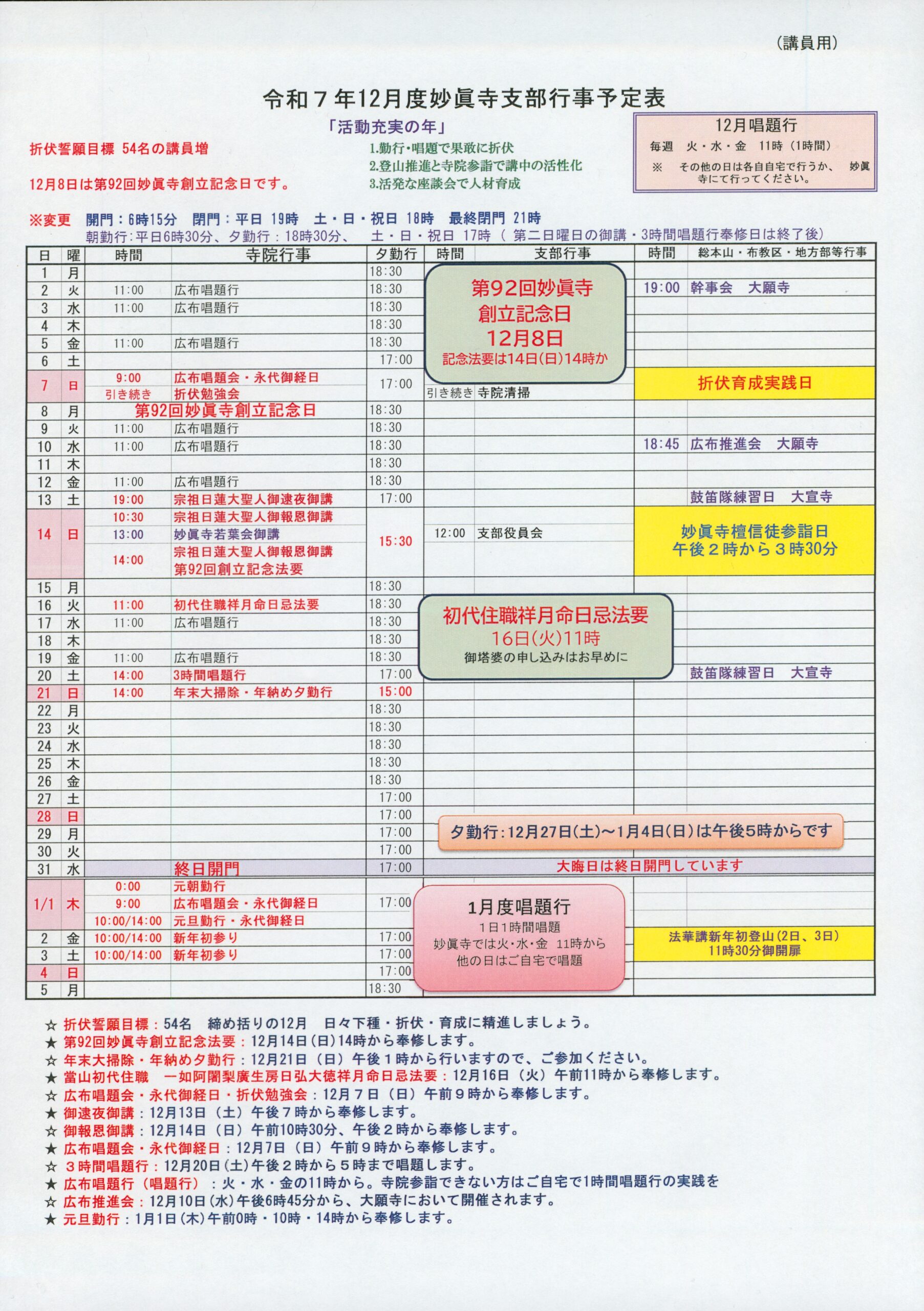 2025年11月24日 / 最終更新日時 : 2025年11月24日 ALEX 妙眞寺月間予定表
