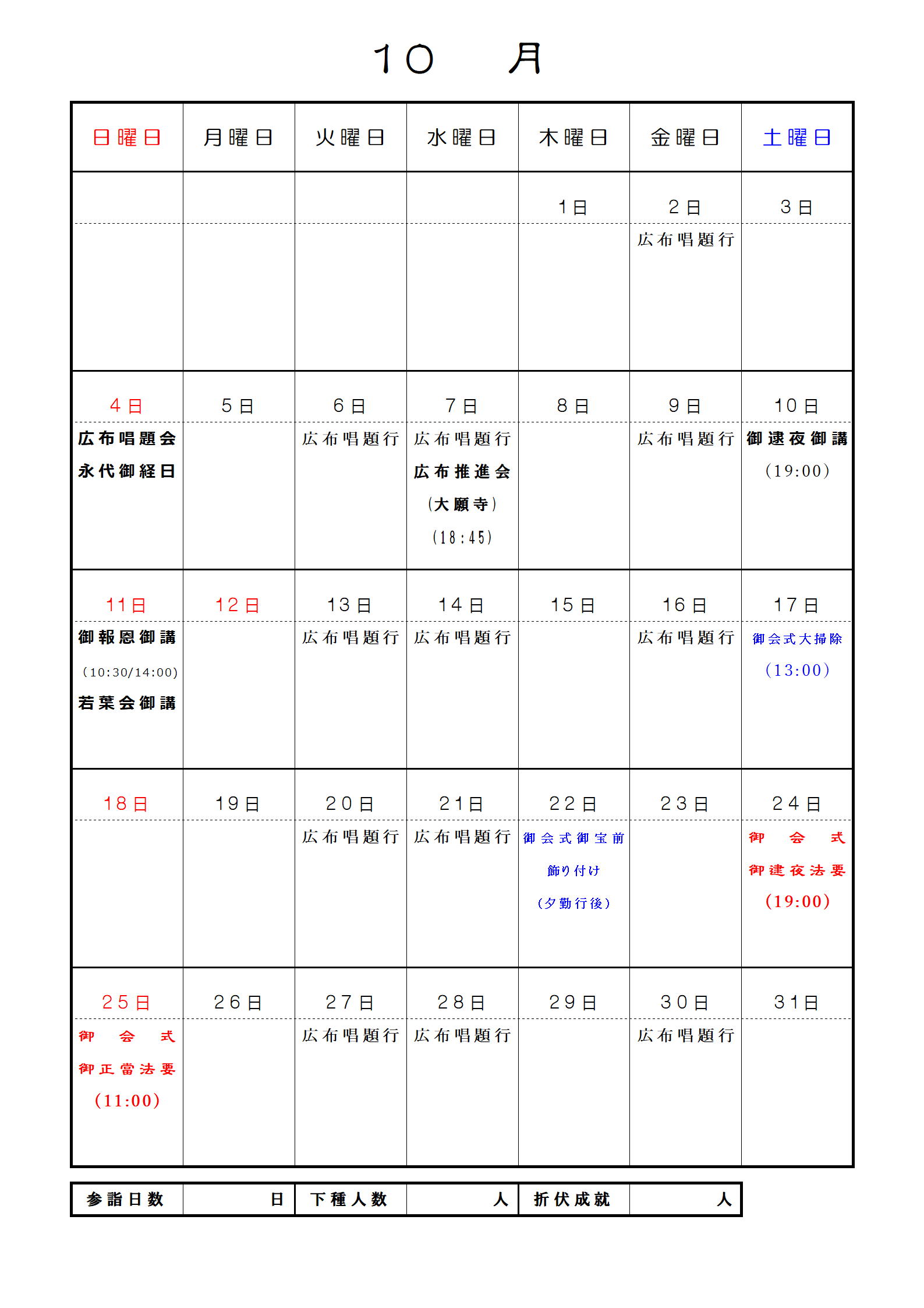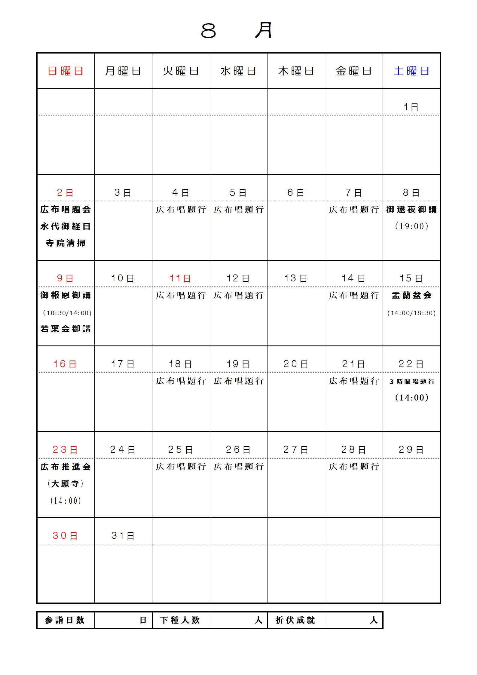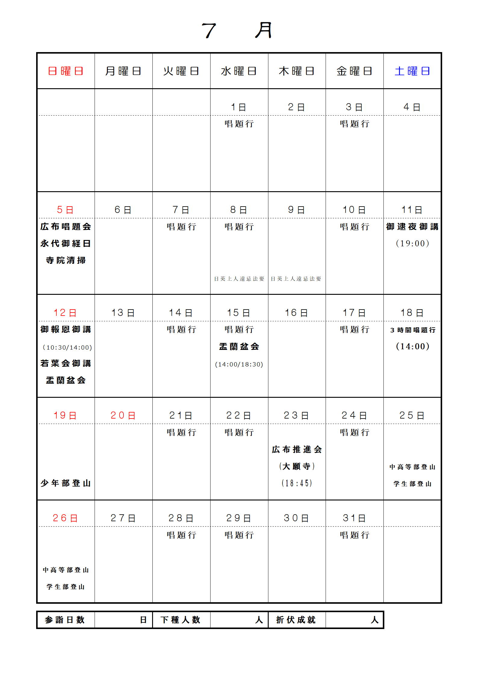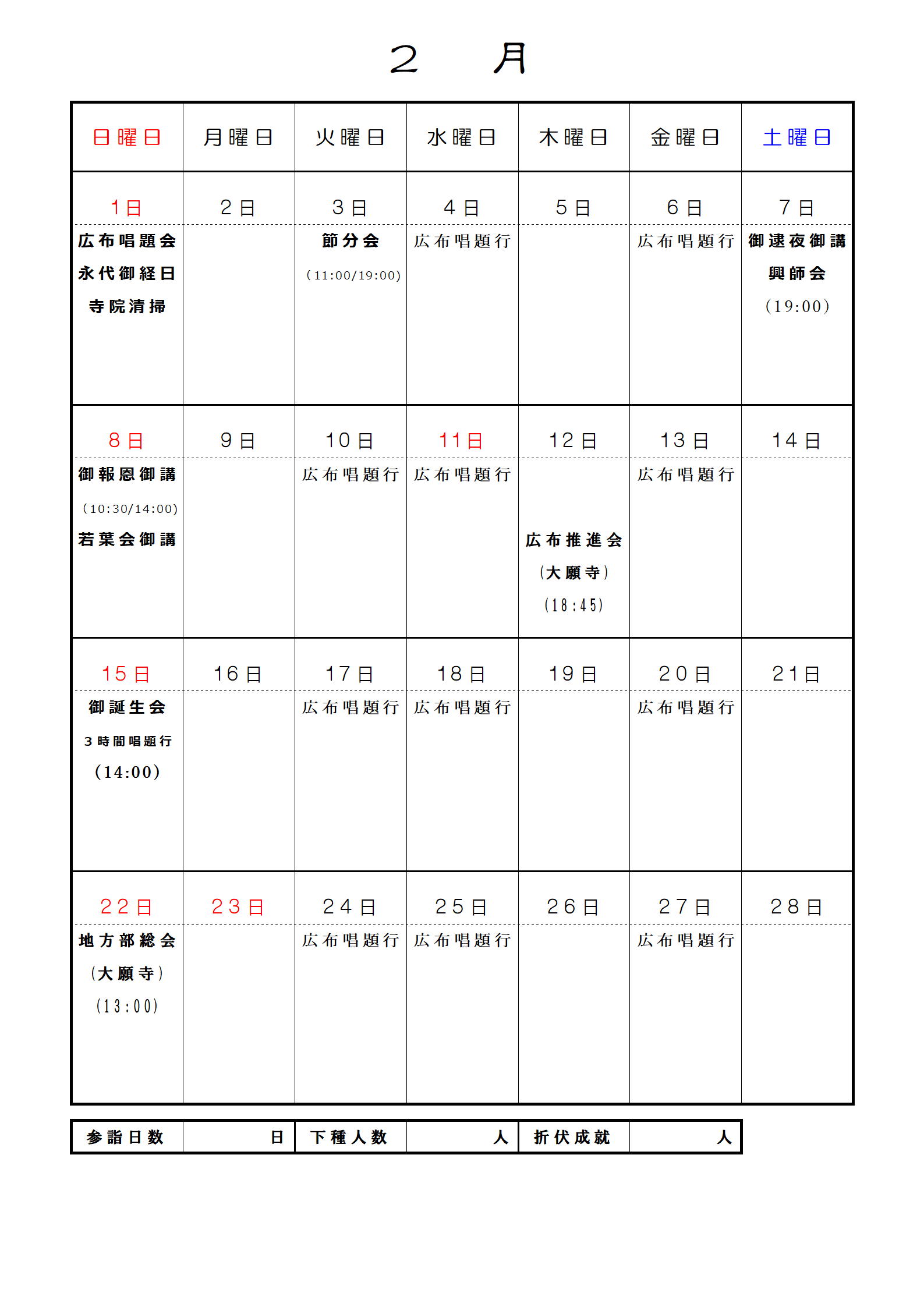 妙眞寺月間予定表